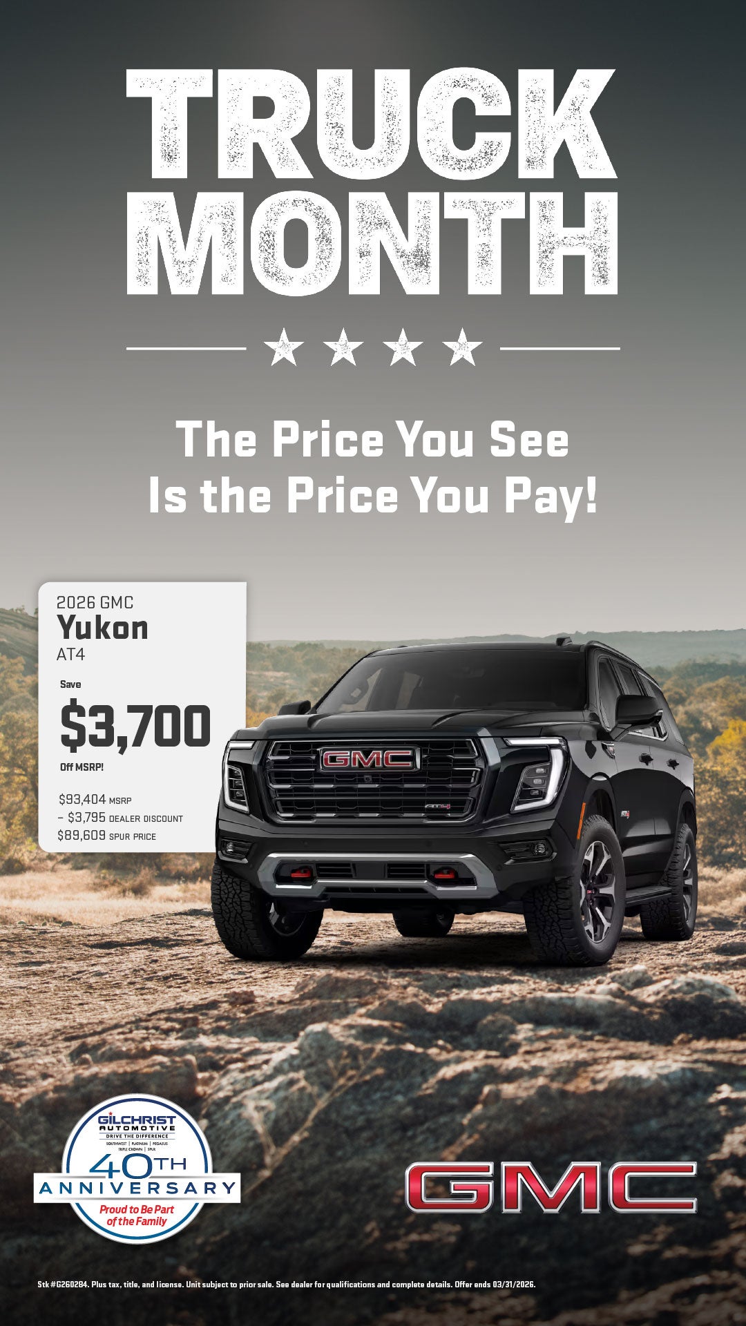 Stk #G260284. Plus tax, title, and license. Unit subject to prior sale. See dealer for qualifications and complete details. Offer ends 03/31/2026.