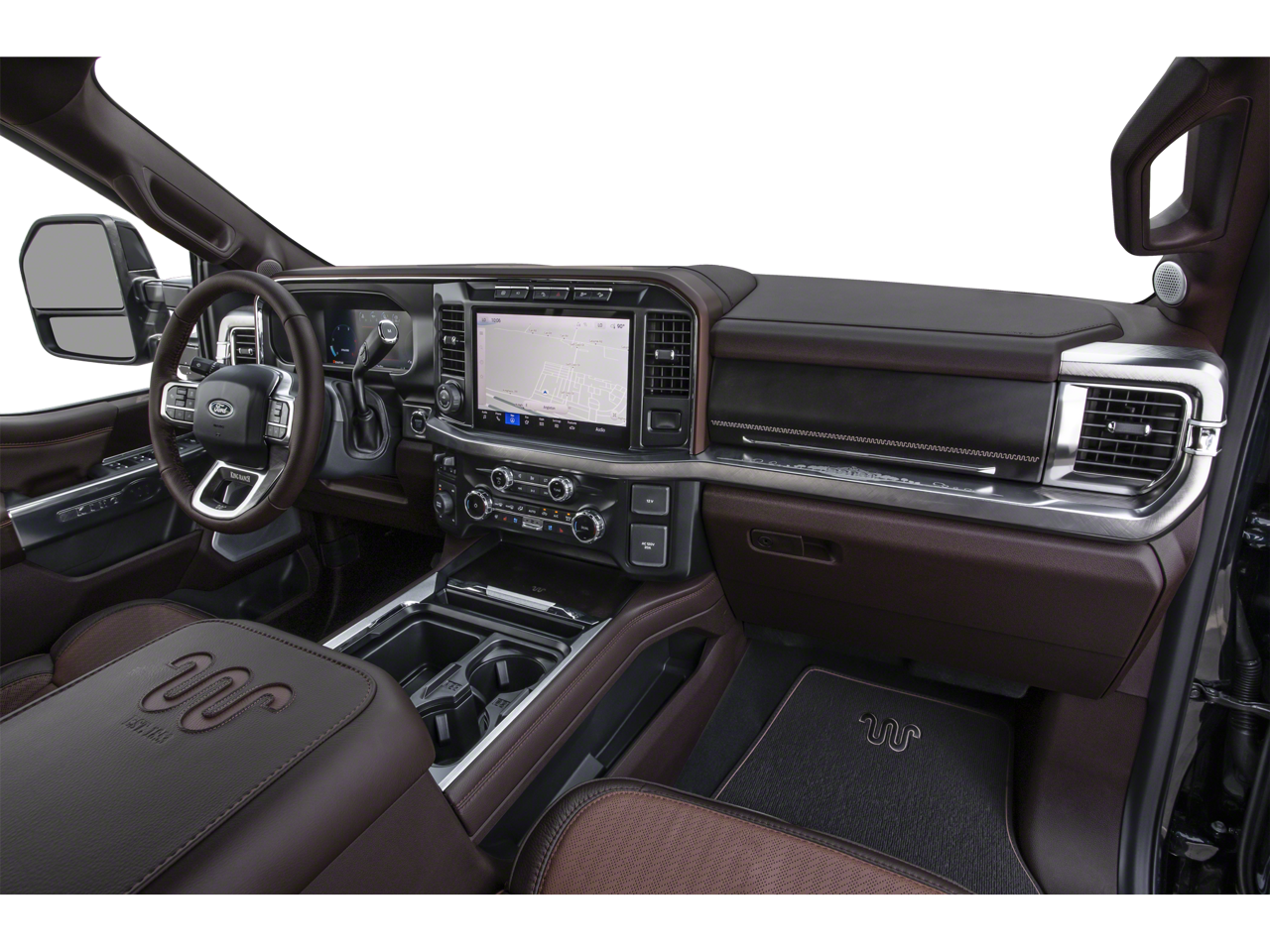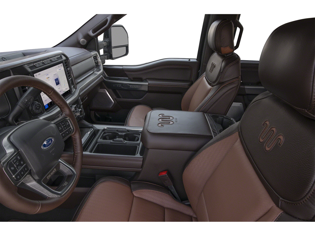 Inside, the King Ranch trim sets itself apart with upscale comfort and technology. You’ll find premium leather seating, heated and ventilated front seats, a heated steering wheel, and a large 12-inch productivity screen, creating a refined and functional cabin. The head-up display and 360-degree camera system make driving and maneuvering this heavy-duty truck easier and more confident.